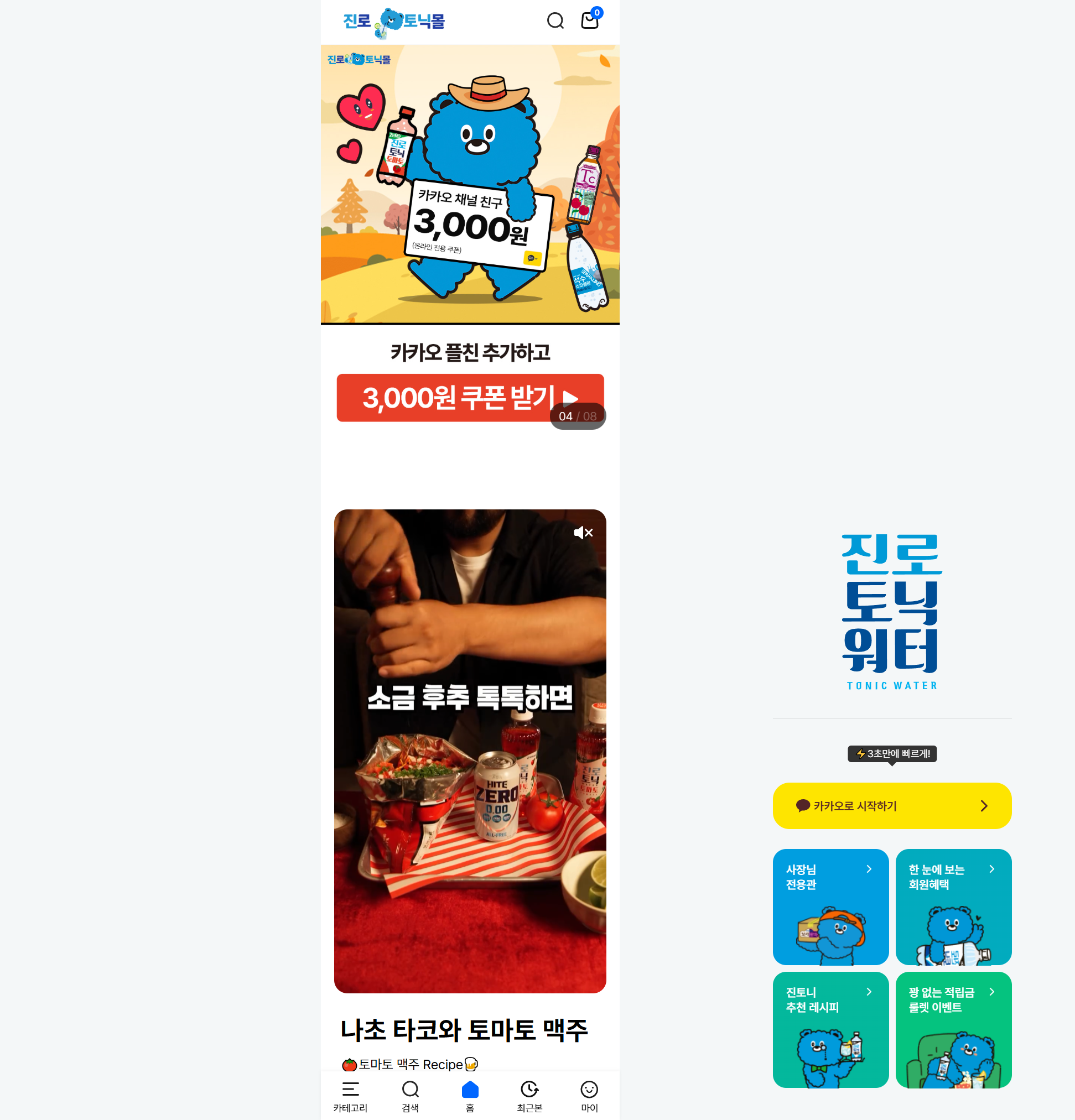 핫딜, 진토니 매거진(진토니 레시피, 진토니 툰) 이벤트, 사장님 전용관(B2B, 대용량), 시크릿 세일을 제공하는 공식 온라인몰 입니다. |
