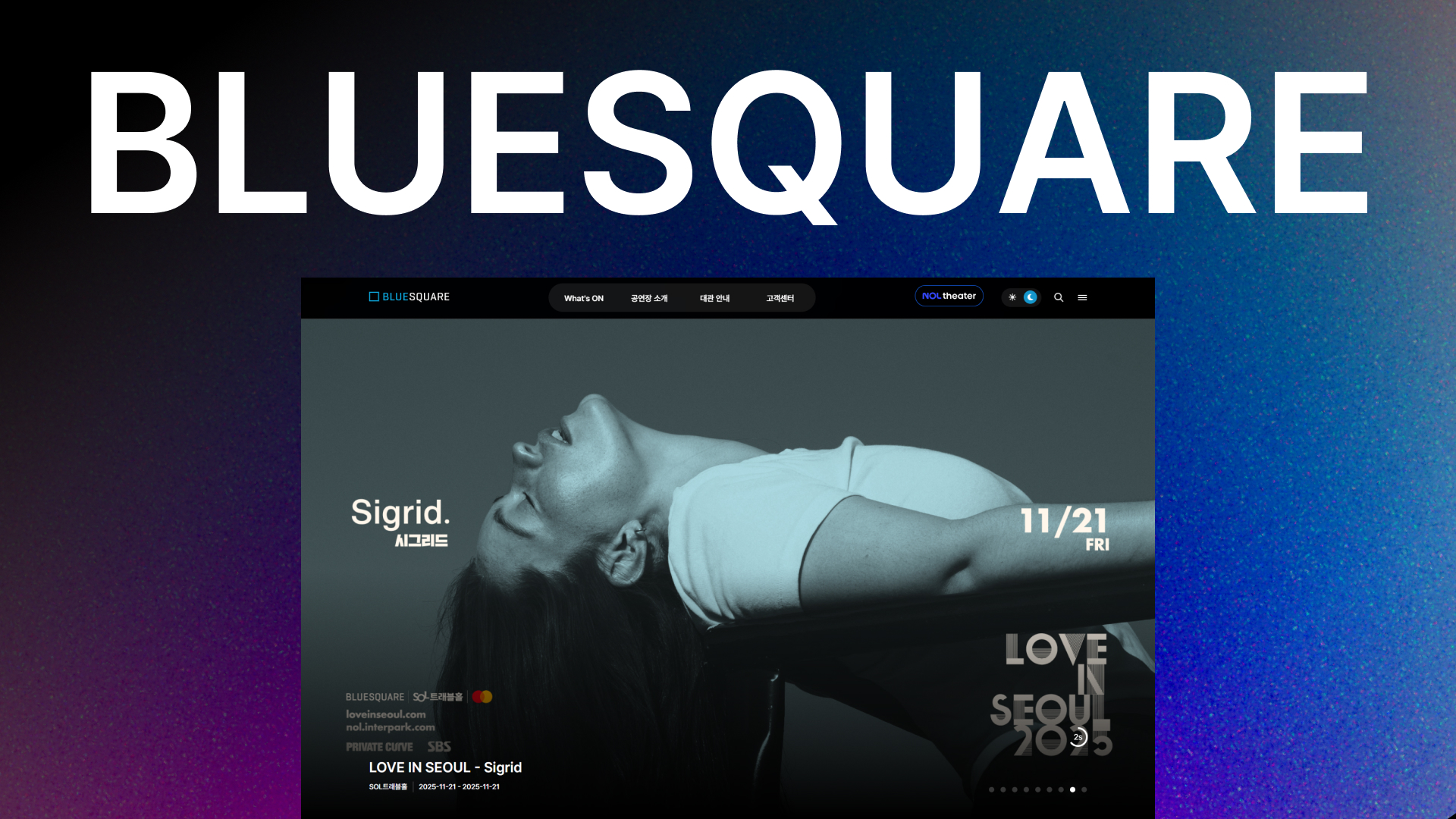 | 소개 | 아티스트에게 꿈의 무대, 관객들에겐 특별한 즐거움을 선사하는 블루스퀘어 웹사이트 | |||||||||||||