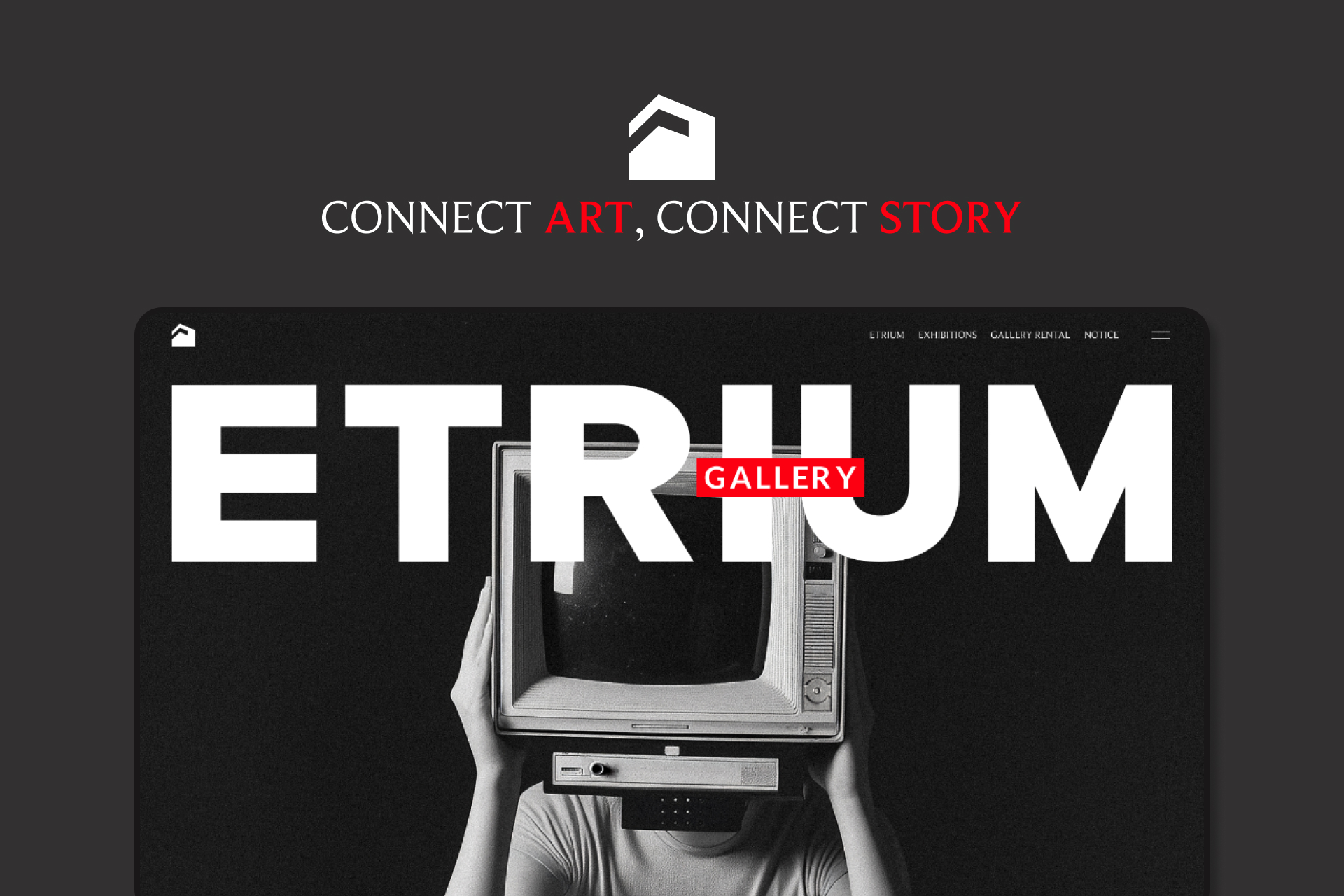 이트라이브는 창작자들이 자신의 감각과 철학을 온전히 실현할 수 있는 새로운 무대를 상상했습니다. 정해진 틀 안에 작품을 전시하는 대신, 작가의 언어와 표현이 공간 전체에 스며드는 전시 경험, 즉 예술을 ‘보는 것’에서 ‘경험하는 것’으로, 창작을 ‘혼자의 여정’에서 ‘함께 빚어내는 흐름’으로 확장하고자 했습니다. 이러한 철학은 ‘갤러리 이트리움(ETRIUM)’이라는 이름으로 현실화되었습니다. 이트라이브가 오랫동안 디지털 영역에서 다뤄온 크리에이터 중심 사고와 경험 디자인 철학이 오프라인 공간에서 구현된 결과물입니다. 갤러리 이트리움은 단순한 전시장이 아니라, 예술이 머무르고 교감하며 성장하는 열린 플랫폼입니다. 이는 “예술적 경험의 확장”이라는 이트라이브의 본질적 비전이 물리적 공간에서 구현된 형태라 할 수 있습니다. ■ Identity ‘이트리움(ETRIUM)’은 ‘이트라이브(ETRIBE)’와 고대 로마 건축 용어인 ‘아트리움(Atrium)’의 합성어로, 사람과 예술이 자유롭게 교류하는 열린 공간을 상징합니다. 브랜드 네이밍이 지닌 ‘공간성’의 의미를 시각적으로 강화하기 위해, 건축적 외형과 빛이 교차하는 구조를 그래픽 모티프로 삼아 브랜드 아이덴티티 전반에 반영했습니다. 이트리움의 비주얼 시스템은 공간이 주는 경험과 예술적 긴장감을 동시에 담아내며, 사이트, 전시 콘텐츠, 인쇄물 등 모든 접점에서 일관되게 적용되어 브랜드의 감성을 자연스럽게 각인시킵니다. 특히 브랜드를 대표하는 심볼은 단독 사용을 넘어 다양한 형태로 확장 가능한 구조적 로고 시스템으로 설계된 이트리움만의 독자적인 시각 언어입니다. ■ Interaction 웹사이트는 공간의 분위기, 예술의 감성을 직관적으로 전달하는 몰입형 인터랙션 디자인을 구현했습니다. 부드럽고 자연스러운 화면흐름으로 구성되어 정보의 과부하를 줄이고, 이동 과정 자체가 하나의 ‘시각적 여정’으로 느껴지도록 설계되었습니다. 이는 관람자가 오프라인 공간에서 느끼는 시선의 이동과 감정의 리듬을 온라인에서도 그대로 이어가게 하는 중요한 장치입니다. ■ UX 이트리움 웹사이트의 UX는 갤러리의 물리적 경험과 온라인 탐색의 조화를 극대화하는 데 초점을 맞추었습니다. 콘텐츠 중심의 구조를 위해 GNB는 기본적으로 숨김 처리하고, 사용자가 역스크롤 시에만 노출되도록 하여 감상에 집중할 수 있는 환경을 제공했습니다. 또한, 대관 페이지는 기간별 앵커, 일정 고정 노출, 빠른 예약 버튼 등을 적용해 사용자가 손쉽게 공간을 탐색하고 예약할 수 있도록 개선했습니다. 사이트 전반에 걸쳐 통일된 인터랙션과 UI 패턴을 적용하여, 페이지가 바뀌더라도 사용자는 익숙한 흐름 속에서 탐색을 이어갈 수 있습니다. 이러한 설계는 단순한 사용 편의성을 넘어, 직관적이고 감각적인 사용자 경험(UX)을 통해 사이트의 완성도와 만족도를 높였습니다. 갤러리 이트리움은 ‘예술의 감각을 공간으로 확장한다’는 철학 아래, 디지털 인터페이스와 물리적 공간이 서로 공명하는 새로운 형태의 예술 플랫폼입니다. |
