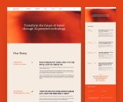 [핵심 특징 1: WebGL 기반의 인터랙티브 키 비주얼] '데이터와 기술로 여행의 미래를 선도하는 기업'으로의 방향을 입체적으로 표현하기 위해 WebGL 기반의 인터랙티브 키 비주얼을 메인에 구현했습니다. 이는 단순한 시각 효과를 넘어, 사용자의 상호작용에 반응하며 야놀자 그룹의 기술력과 비전을 감각적으로 경험하게 만듭니다. [핵심 특징 2: 브랜드 가이드를 완벽하게 반영한 디자인 시스템] 야놀자 그룹의 공식 디자인 가이드('Yanolja Orange', 'Dream Multiverse')를 웹사이트 전반에 일관되게 적용하였습니다. 이를 통해 글로벌 시장을 향한 강력하고 통일된 브랜드 이미지를 구축하고, 사용자에게 높은 브랜드 신뢰감을 전달합니다. [핵심 특징 3: 명확하고 전문적인 비즈니스 콘텐츠] 클라우드 호스피탈리티 솔루션(Cloud Hospitality Solution), 트랜잭션 솔루션 (Transaction Solution), AI 기반 데이터 솔루션(AI-Powered Data Solution) 등 복잡할 수 있는 엔터프라이즈 솔루션(B2B) 사업 영역을 명료한 정보 구조와 전문성 있는 톤앤매너로 재정의했습니다. 글로벌 고객들이 원하는 정보를 빠르고 쉽게 찾을 수 있도록 설계되었습니다. [핵심 특징 4: 몰입형 스토리텔링 연혁] 기업의 성장 과정을 단순 나열하는 것이 아닌, 스크롤 인터랙션에 기반한 '스토리텔링형 마일스톤'으로 구성했습니다. 사용자는 스크롤을 통해 야놀자 그룹의 주요 연혁과 비전을 시간 순으로 몰입감 있게 경험하며 브랜드의 여정에 동참하게 됩니다. 본 웹사이트는 야놀자 그룹의 '10X'(여행을 10배 더 쉽게) 미션을 디지털로 구현하고, 글로벌 트래블 테크 기업으로서의 리더십을 증명하는 강력한 브랜드 플랫폼입니다. |