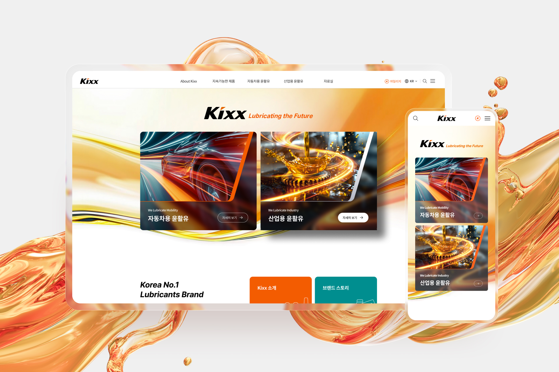 ■ 기획 의도 GS칼텍스의 윤활유 브랜드 Kixx는 런칭 20주년을 맞아 비주얼 아이덴티티 리브랜딩과 웹사이트 개편을 통해 브랜드 정체성을 강화했습니다. 이번 프로젝트는 GS칼텍스 그룹의 일원으로서 시각적 통합성과 신뢰감을 확보하고, 글로벌 시장에서 프리미엄 윤활유 브랜드로서의 독립적 위상을 확립하는 것을 목표로 했습니다. 브랜드의 핵심 가치인 기술력·신뢰·혁신성을 일관된 시각 언어로 전달하고, 온라인상에서도 브랜드 경험이 오프라인 제품 품질과 동일한 인상을 주도록 기획되었습니다. 또한 글로벌 소비자와 B2B 파트너가 필요한 제품·기술 정보를 효율적이고 직관적으로 탐색할 수 있는 정보 플랫폼으로 구축하여, Kixx의 제품 경쟁력과 기술 전문성을 명확하게 전달하고자 했습니다. ■ UX/UI 전략 UI·UX는 글로벌 사용자에게 일관된 브랜드 경험을 제공하기 위해 전면 재정비되었습니다. GS칼텍스의 시각 아이덴티티를 유지하면서도 Kixx만의 독립 이미지를 반영해 브랜드 통합성과 개별성의 균형을 구현했습니다. 정보 구조는 모듈형 IA로 재구성해 제품을 신제품/기존 제품으로 명확히 구분하고, 검색 및 필터 기능 고도화, 주요 메뉴 고정 노출을 통해 접근성과 탐색 효율을 높였습니다. 또한 반응형 레이아웃과 다국어 UI 가이드라인을 적용해 모든 디바이스에서 동일한 경험을 제공합니다. ■ 디자인 및 기술적 특징 디자인은 New Kixx Branding Design을 기반으로 프리미엄 이미지를 직관적으로 표현했습니다. 정보 전달력을 높이는 클린 레이아웃·고대비 컬러 시스템과 기술적 신뢰를 상징하는 메탈릭 비주얼 톤으로 브랜드 감도를 강화했습니다. 메인 비주얼은 ‘기술로 움직이는 에너지’라는 슬로건을 시각화했으며, 제품 상세 페이지는 성능·특징을 데이터 중심으로 구성해 정보 전달력과 몰입감을 동시에 확보했습니다. 기술적으로는 반응형 웹·다국어 지원·제품 코드 체계 개선을 통해 운영 효율성과 글로벌 접근성을 높였습니다. 또한 윤활유 산업 특성에 맞춰 추가 Breakpoint 설계를 적용해 특수한 사용자 환경에서도 안정적인 이용이 가능하도록 했습니다. Kixx 웹사이트는 기술과 디자인이 조화를 이루는 글로벌 프리미엄 브랜드 플랫폼으로 재탄생했습니다. GS칼텍스는 이를 통해 일관된 신뢰감과 혁신적 브랜드 경험을 온라인에서도 실현하며, Kixx는 세계 시장에서 ‘기술이 만든 프리미엄 에너지’라는 가치를 강화했습니다. |