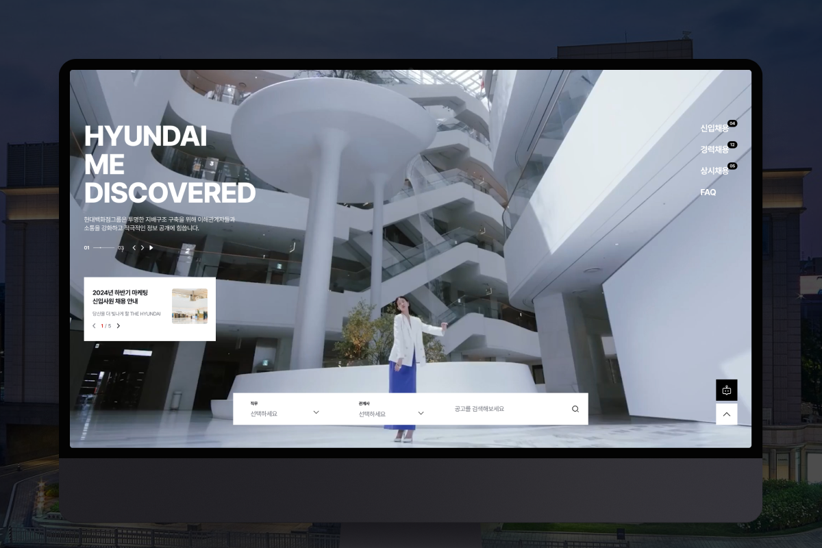 빠르게 변화하는 채용 트랜드에 맞춰 기존 계열사 중심의 채용이 아닌 직무 중심의 채용으로의 홈페이지 개편이 필요하였고, 최신 디자인 트랜드와 직무 중심의 공고 및 신규 콘텐츠 제공을 통해 핵심 정보 전달과 사용자의 편의성을 개선하며 유연한 시스템, 채용 브랜딩 사이트로 개편되었습니다. Focus - 직무 콘텐츠 강화와 개선사항의 명확한 정의를 통해 채용 및 상시 체용 프로세스 개선/정립 Design - 최신 디자인 트렌드 반영, 채용 공고 템플릿 디자인 통일 및 사용 편의성 확장 직무 확인부터 공고 지원까지 전체 과정에서 최소한의 프로세스와 편의성 중점으로 홈페이지를 개편하여, 사용자와 고객사 모두 포탈과 어드민을 사용함에 있어 편의성을 높일 수 있도록 하였습니다. |