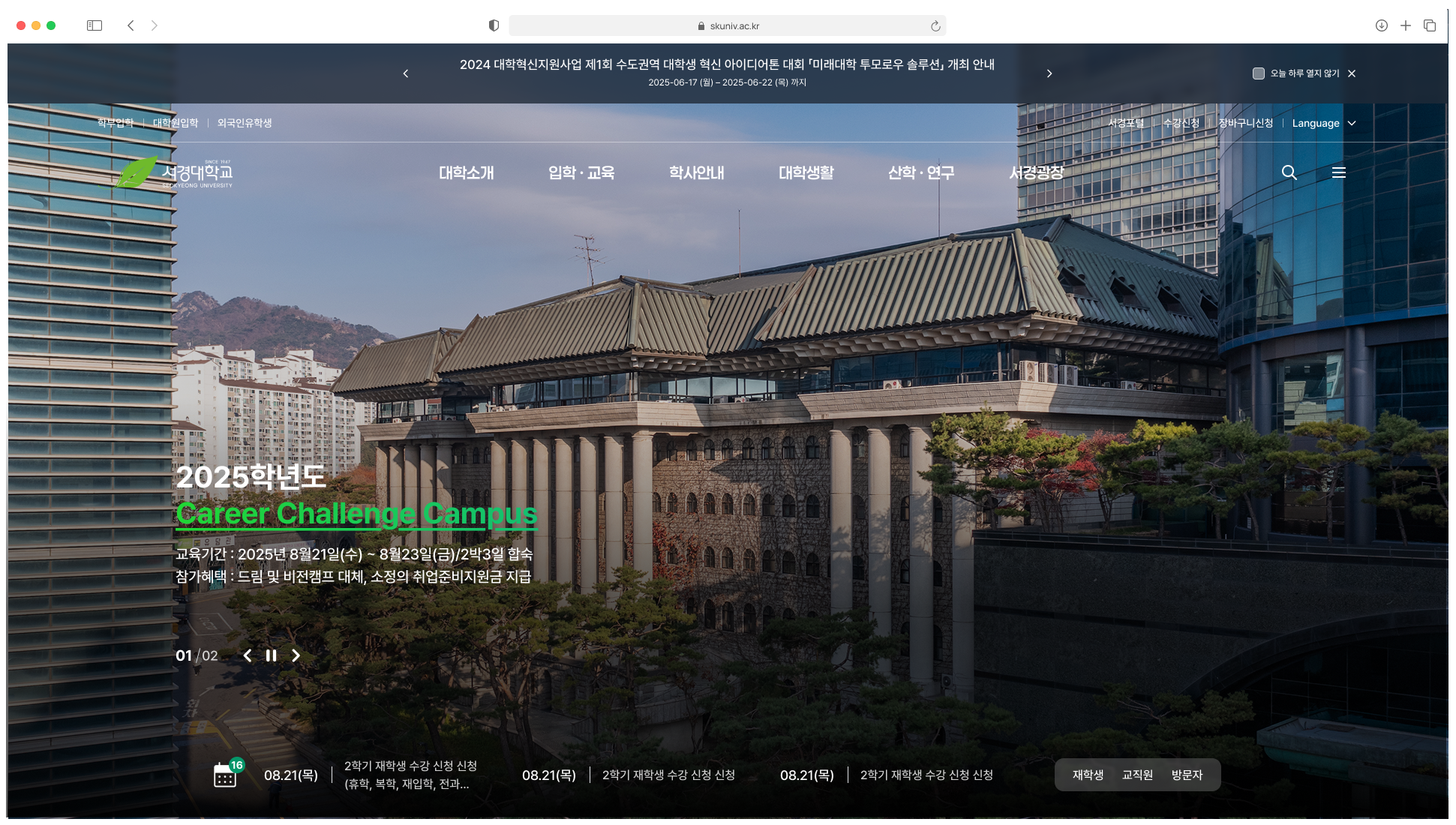 | 키워드 | 서경대학교,대학교,4년제,반응형 홈페이지,대학 홈페이지,서경대 | |||||||
