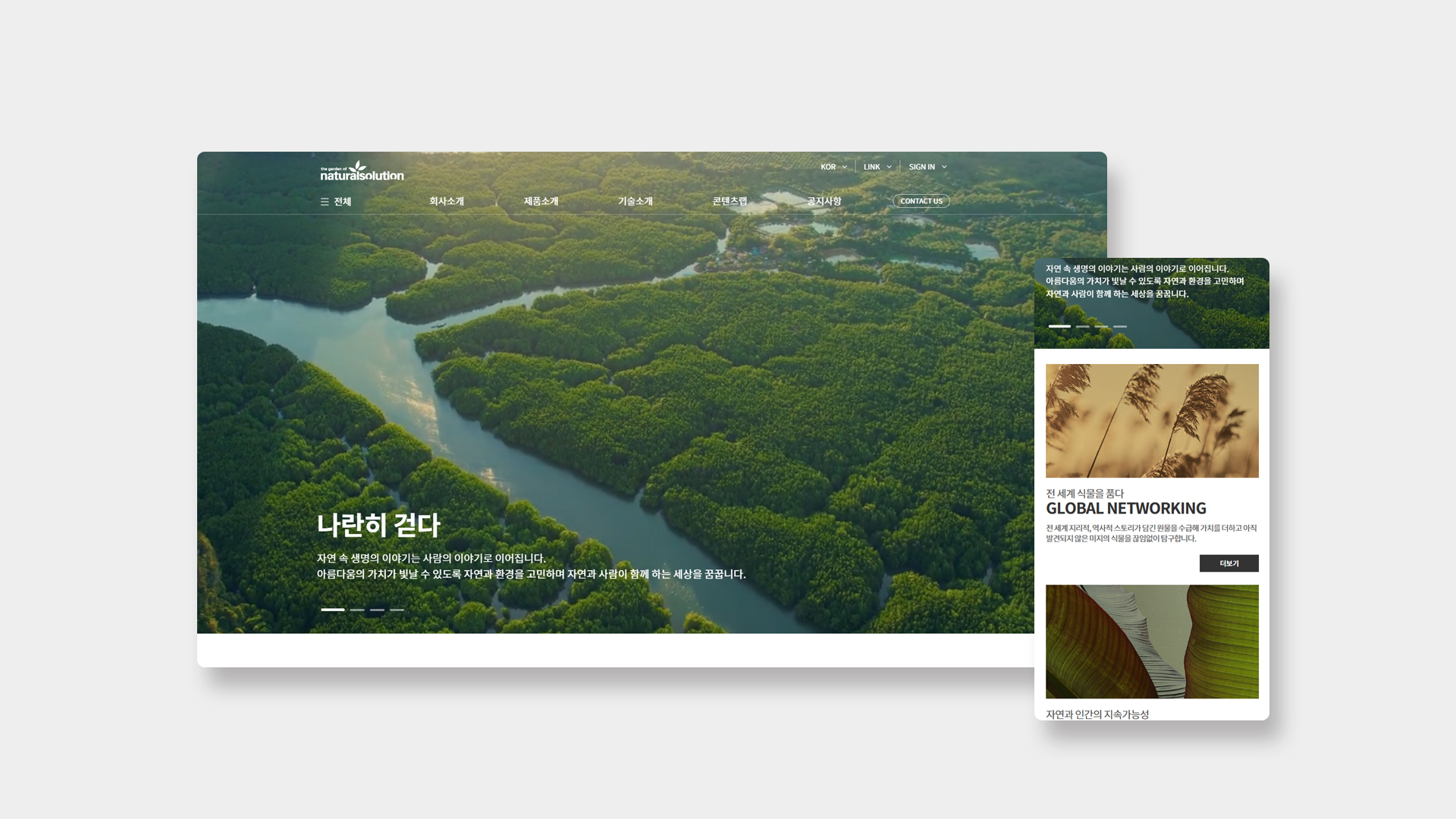 | 소개 | 천연 화장품 원료 기업의 철학과 기술력을 담은 브랜드 웹사이트 | |