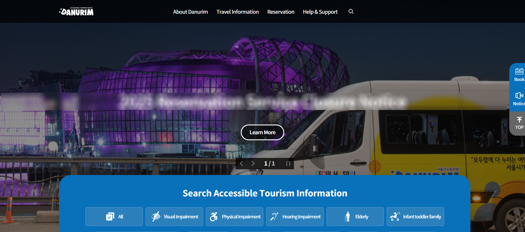 유니버설 환경을 갖춘 서울다누림관광센터 개관 등을 통해 서울을 찾는 관광객 모두가 즐길 수 있는 ‘유니버설 관광도시 서울’을 조성하고 있는 서울관광재단은 ‘서울다누림관광 홈페이지’를 통해 장애인, 고령자, 임산부, 영유아 및 동반자 등 관광 약자를 위한 무장애 관광 플랫폼을 구축함으로써 관광 약자의 접근성 향상과 공공 포용성 확대에 크게 기여하여 정책적•사회적 가치가 매우 높을 뿐만 아니라 데이터 기반 장애 유형별 정보 제공 등 공익성이 뚜렷하다는 평가를 받았다.